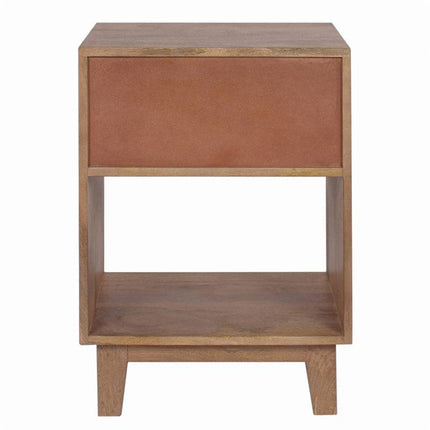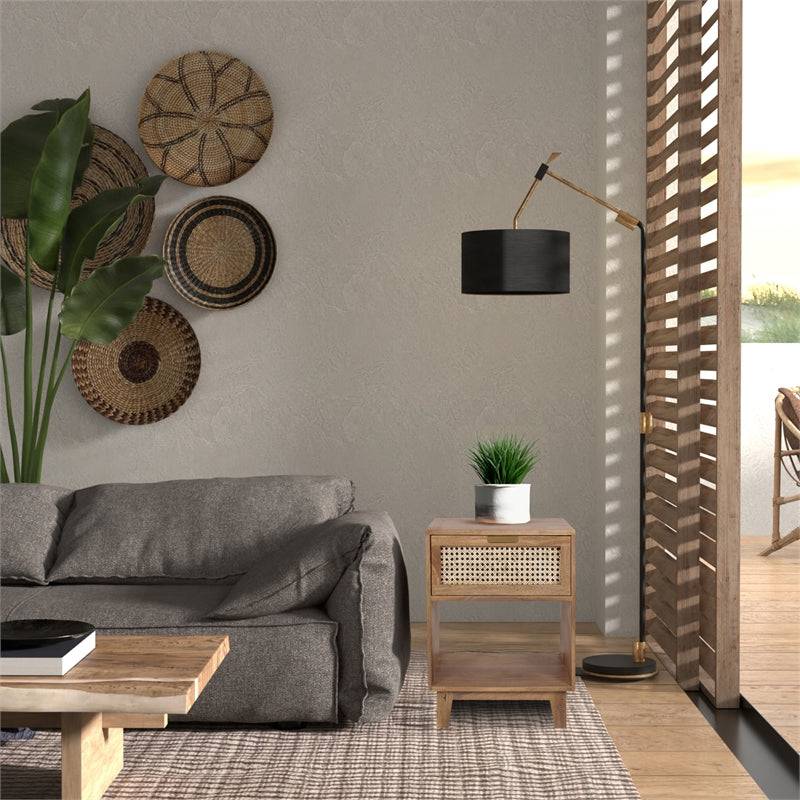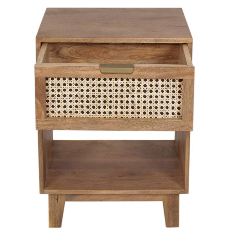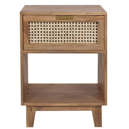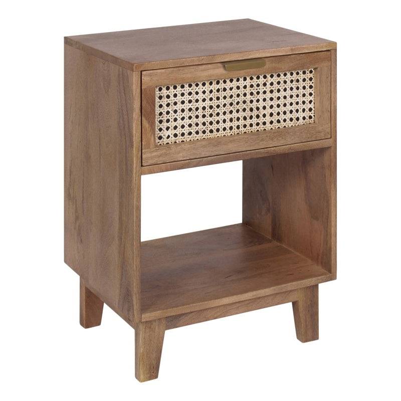 The perfect nightstand for a rustic farmhouse touch! This naturally finished nightstand features one spacious drawer with an intricate woven cane insert panel to store away any bedside needs, while the open compartment below is great for books or other storage needs. A perfect mix of style and practicality! With this piece, you can add striking charm to your home and have guests instantly impressed at the same time.