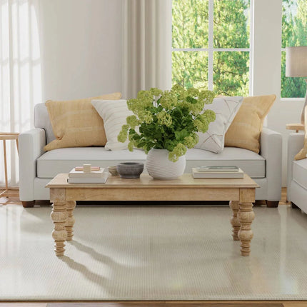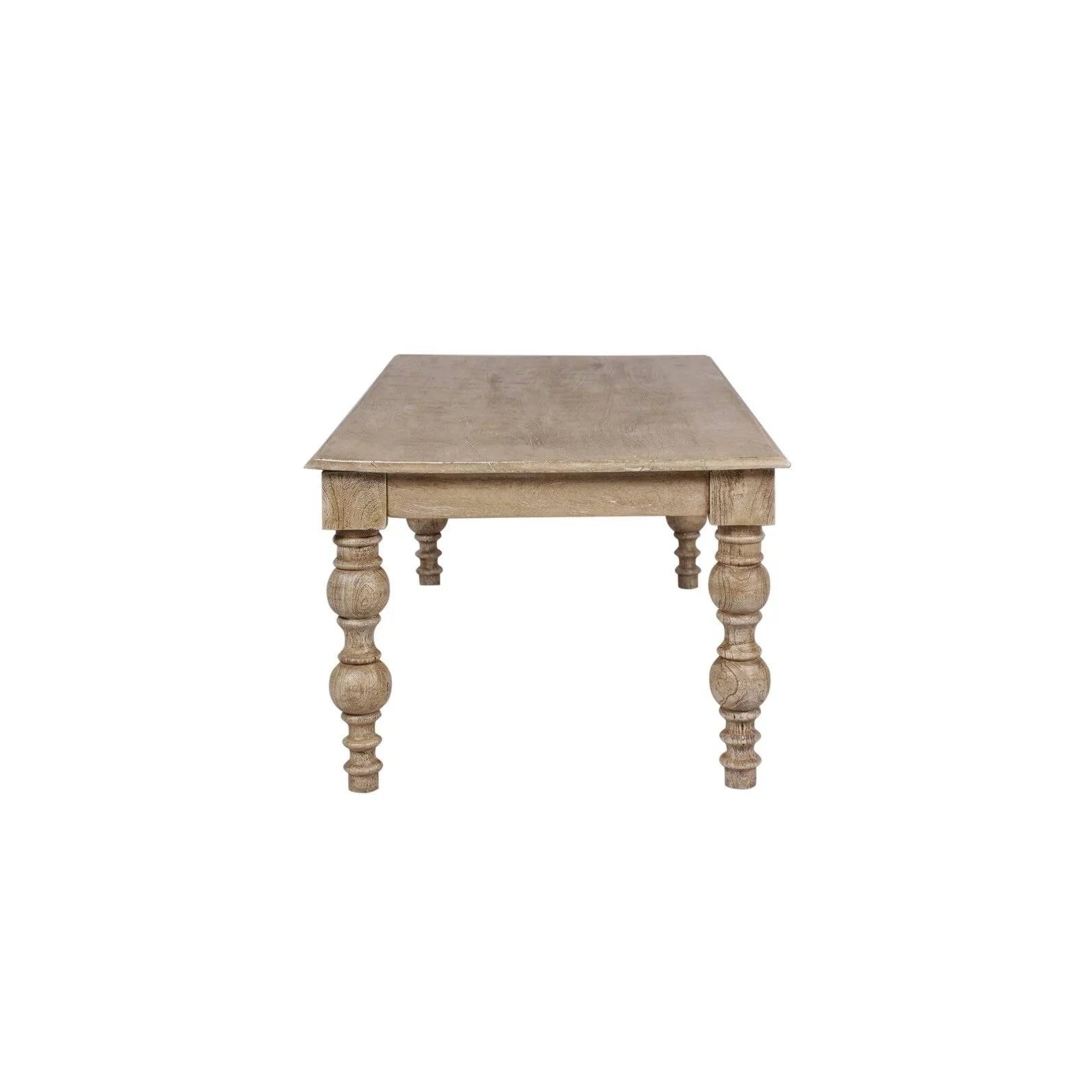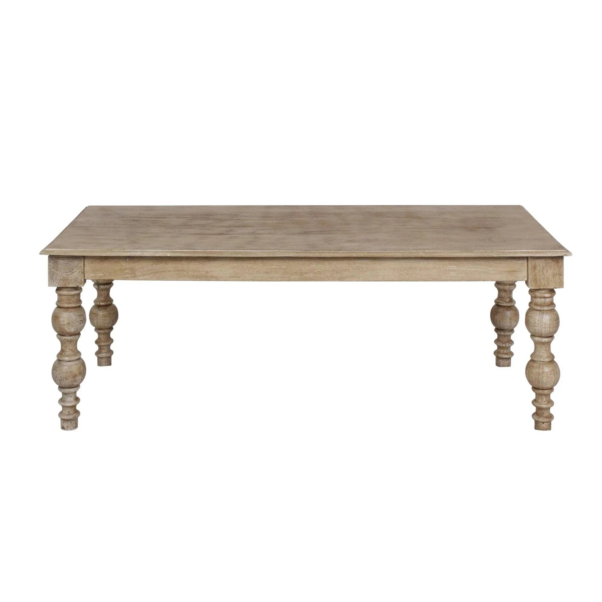 It's time to upgrade your modern farmhouse-style living room with this French-country-inspired dining table of your dreams - the James natural coffee table! Expertly handcrafted by skilled artisans from durable solid hardwood and finished with a distressed natural finish, this table has an eye-catching rustic design that will elevate the look of your living room. This table offers plenty of space to entertain and comfortably seats for up to four of your favorite people. Its gorgeous French-country-inspired turned-leg design is a key feature giving this table its unique stylish look. Bring this timeless solid mango wood dining table to your home and enjoy the quality, beauty, and elegance for years to come.