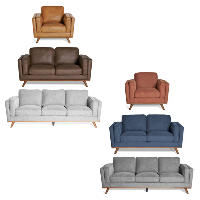 Channel mid-century modern style with our Maddox Classic Collection. Plush cushions, sleek lines, and durable construction in blue, terra cotta, or gray create a must-have statement piece for your living room. Also available in our brand new faux leathers, cognac & chestnut!